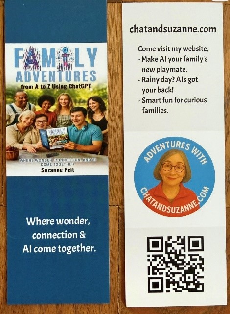 ALSO: If you send your address to chatandsuzanne@gmail.com, I’ll send you a designer QR-coded bookmark so we can continue to connect.